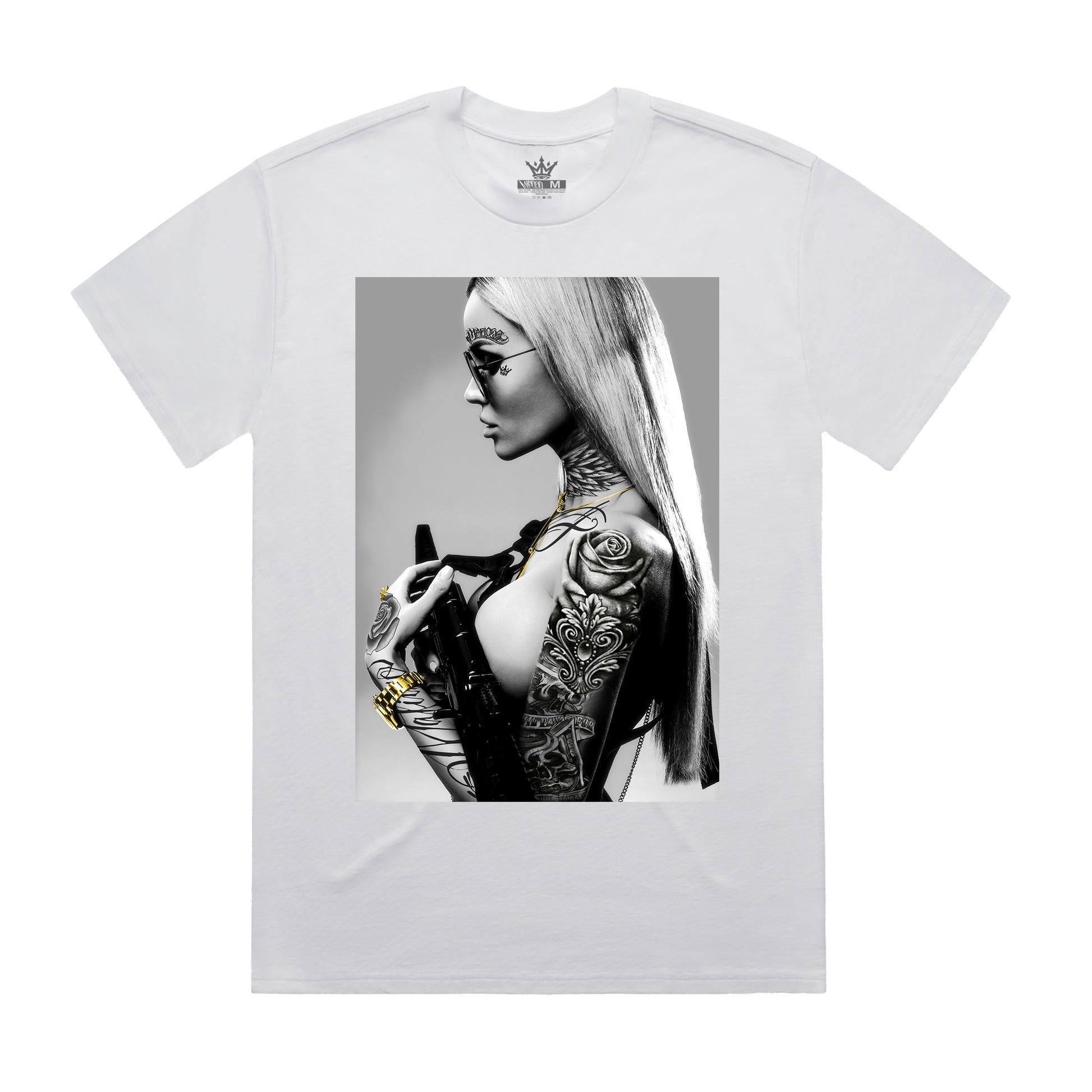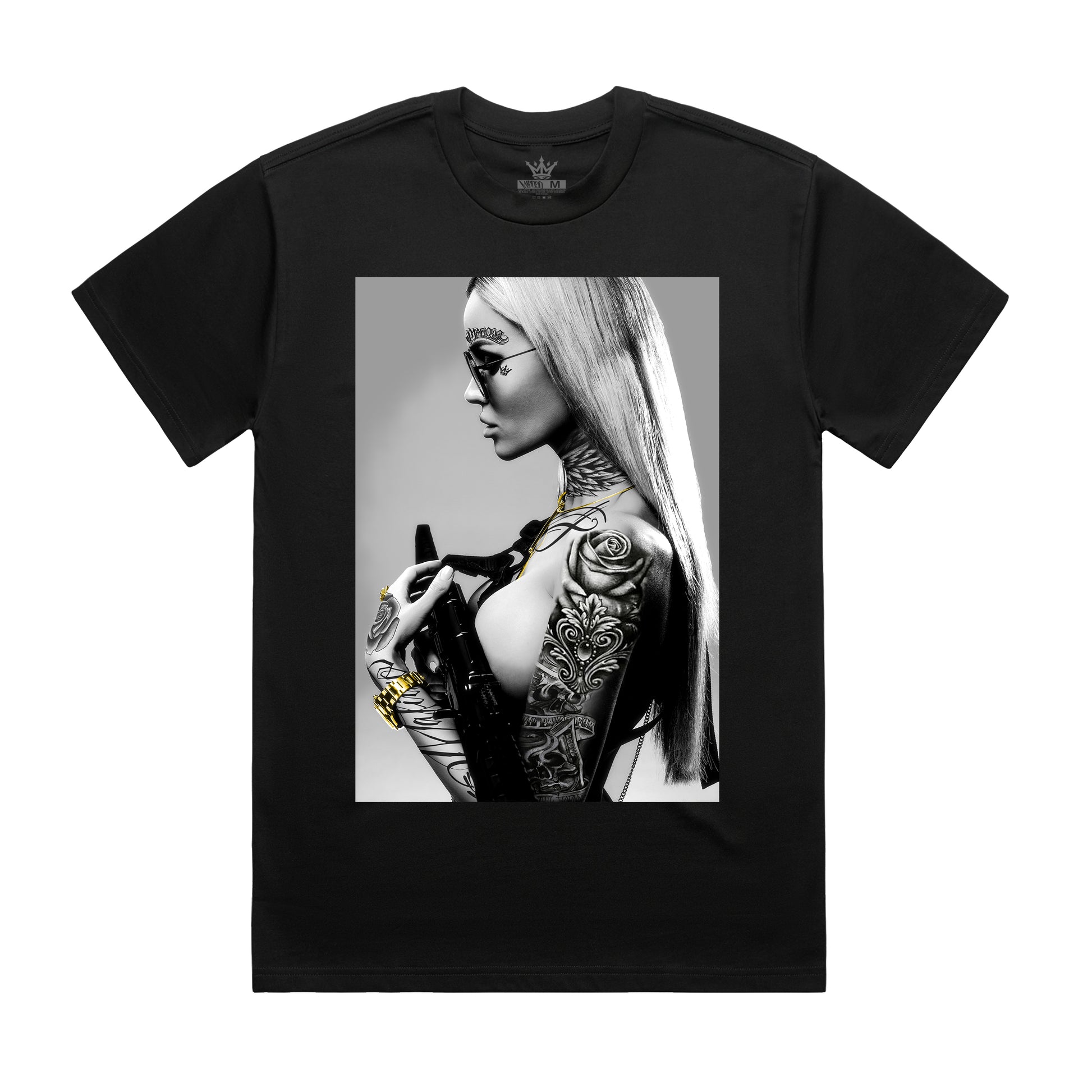 - Double-needle bottom hem and sleeves